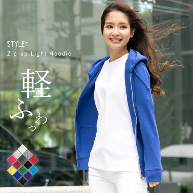 【送料無料】パーカー レディース 無地 長袖 フード ジップ トレーナー 白 黒 ネイビー 薄手 ライト 春 おしゃれ ガールズ スポーツ ダンス 運動会 文化祭 イベント お揃い カラフル