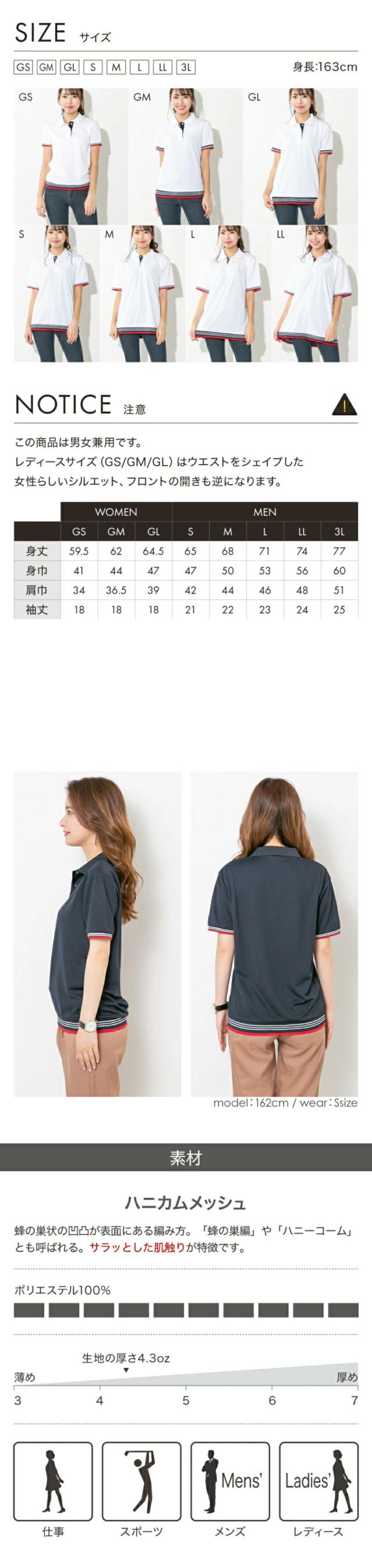 ■GS〜GLサイズはレディースサイズです。フロントの開きも逆になります。 ■1cm〜2cm程度の縫製誤差が生じる場合がありますので、予めご了承下さい。 ■レッド・ネイビー・ホワイト・ブラックは、袖・裾のラインがレッドになります。 ■サックス・ライトピンク・ピンク・ターコイズは、袖・裾のラインが身頃と同色になります。 ■PCやモニター環境によっては実際の色合いと異なる場合がございますので、あらかじめご了承ください。 |