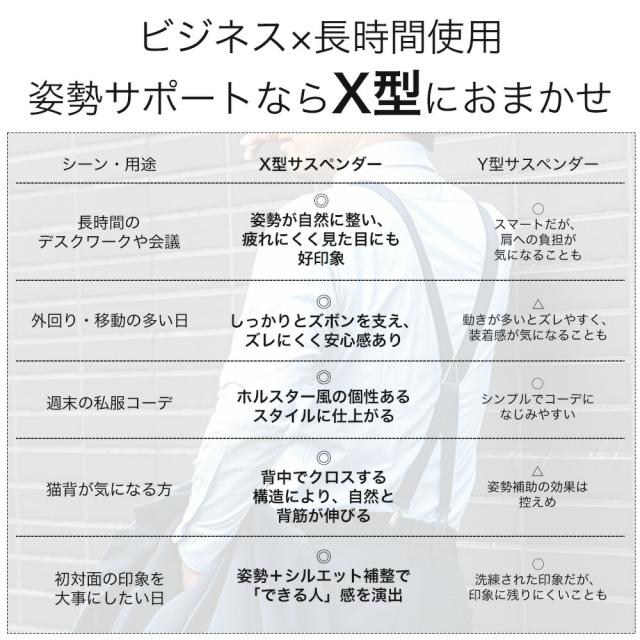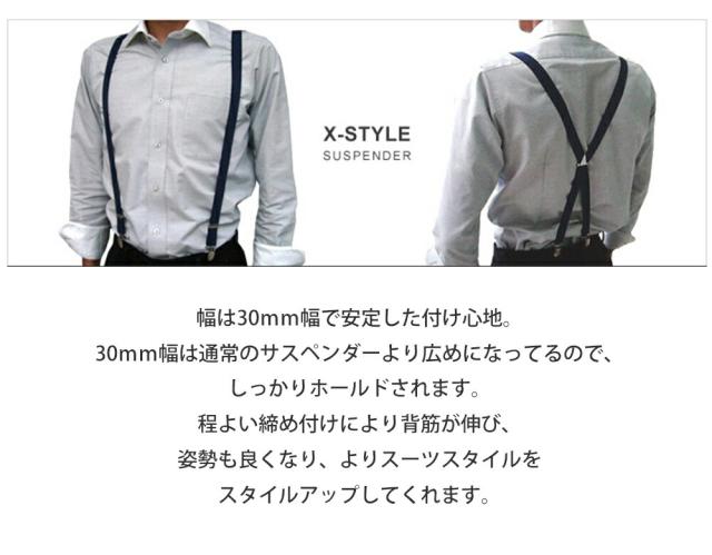 ビジネス フォーマル 両用。初心者向けサスペンダー メンズ 30mm 幅 X型 結婚式 や 披露宴 二次会 にも。仕事のスーツでも着用可能です。