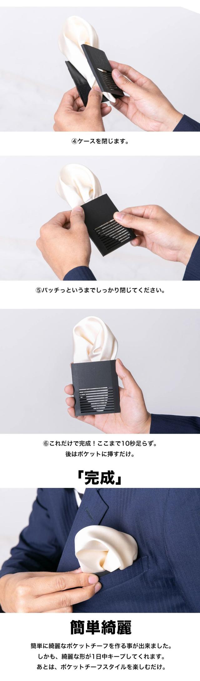 お手持ちのチーフが簡単に ワンタッチチーフ に変身 綺麗な形をキープ