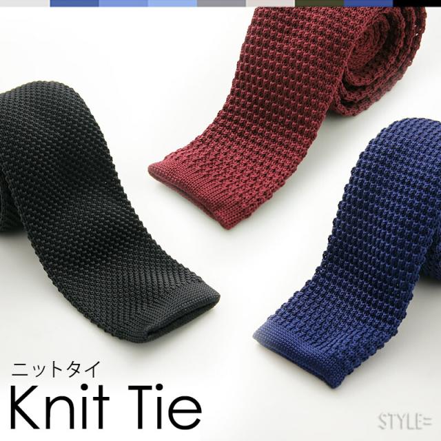 ニットタイ 無地 ネクタイ 紺 黒 ネイビー ワイン グレー ブラウン ターコイズ パープル ポリエステル ナロー 6cm クールビズ ビジネス カジュアル