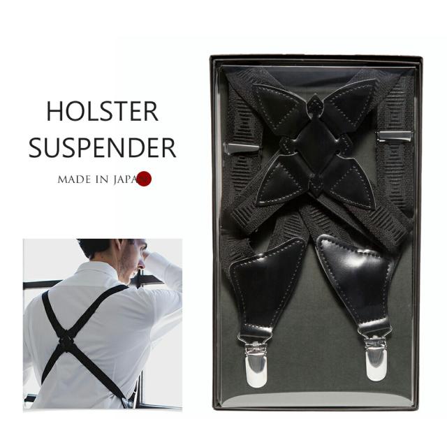 ホルスターサスペンダー(ガンタイプ サスペンダー)メンズ ビジネス コードバンタイプフェイクレザー・ブラック(ダイヤ柄)日本製