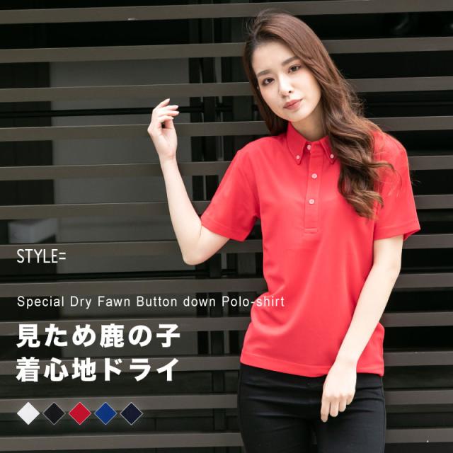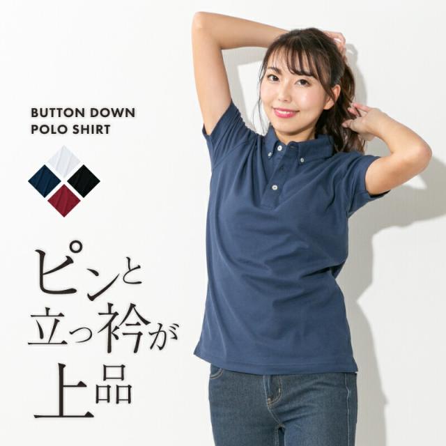 ポロシャツ レディース 半袖 かわいい 無地 ドライ 吸水 速乾 ボタンダウン おしゃれ 黒 白 ネイビー スポーツ ゴルフ 制服 ユニフォーム 仕事 大きいサイズ