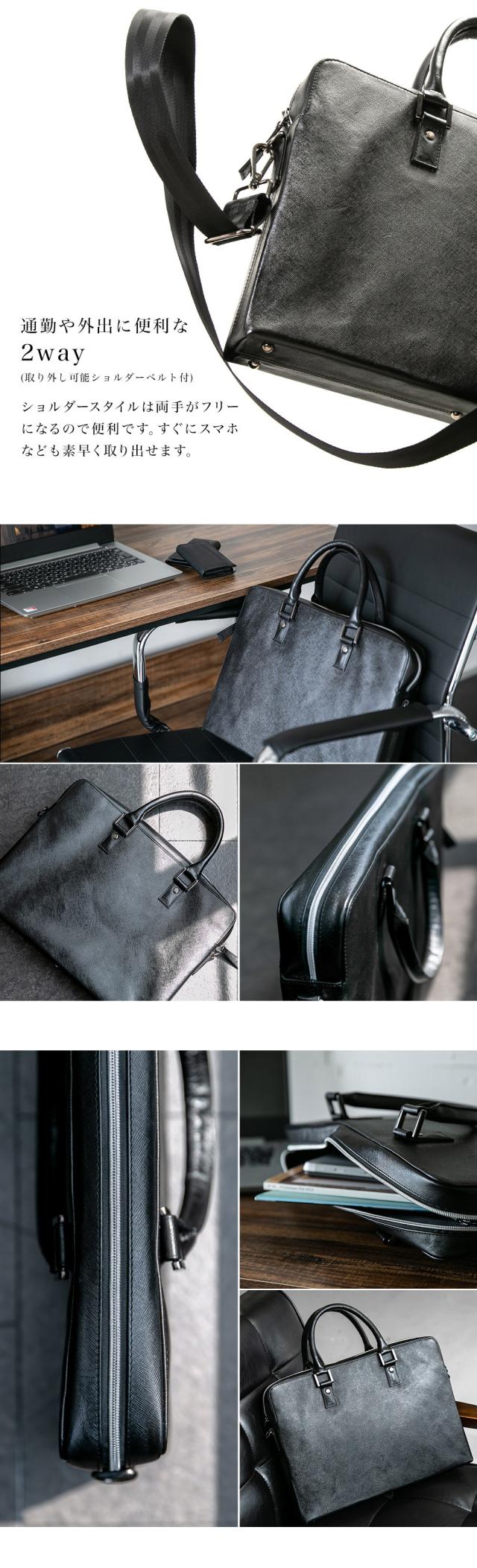 ビジネスバッグ メンズ ブリーフケース 本革 牛革 スリム ショルダー 軽量 大容量収納 書類 ファイル 2way