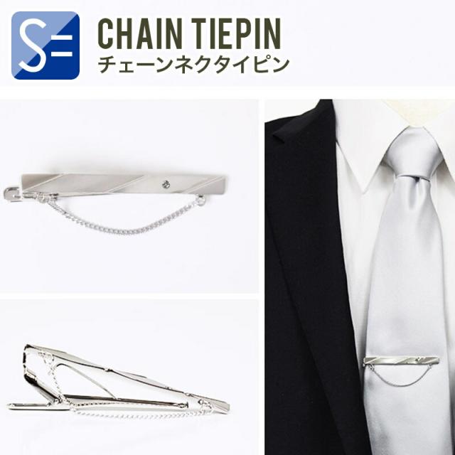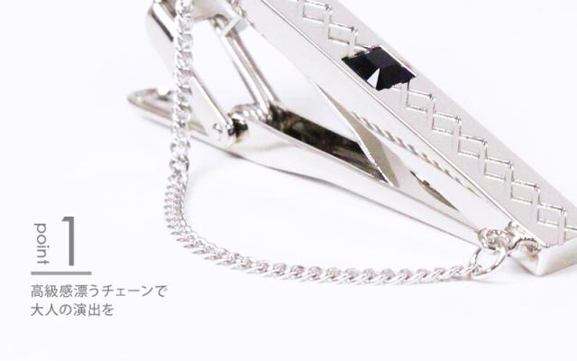 ネクタイピン / タイピン / タイバー / 商品到着後に【 送料無料 】 / チェーン / スワロフスキ / シルバー / フォーマル / ビジネス / プレゼント