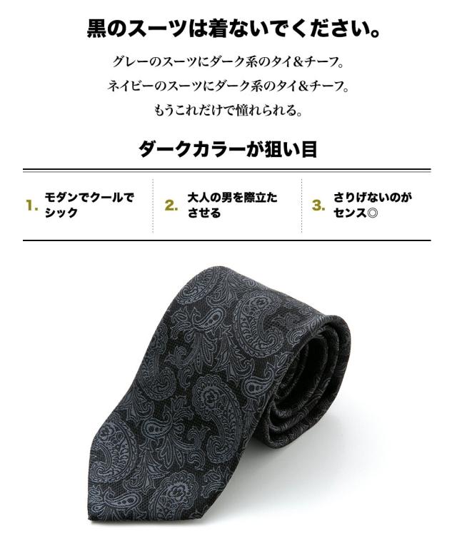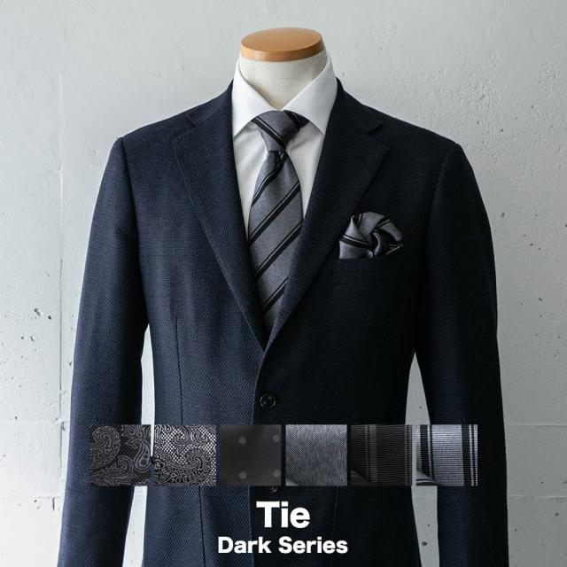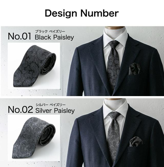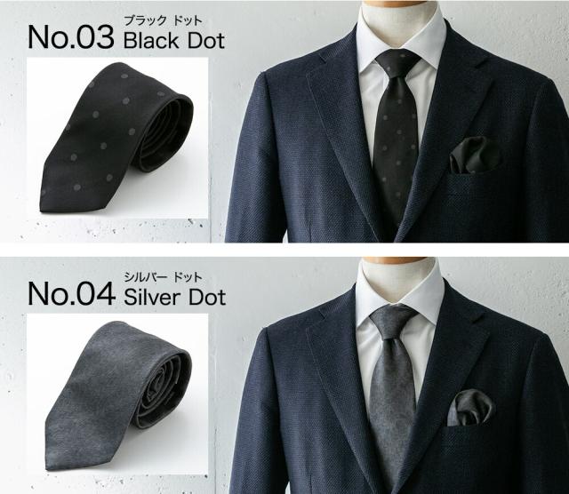 ネクタイ 日本製 ブラック シルク100% シルバー フォーマル パーティー ストライプ ドット ペイズリー ※チーフは別売り