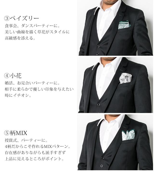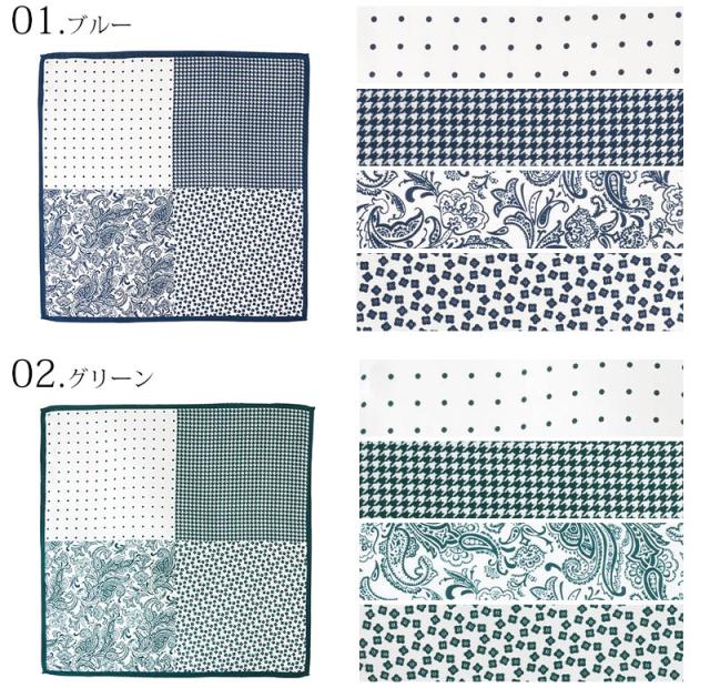【ポスト投函便送料無料】 ポケットチーフ 4WAY シルク100% メンズ 結婚式 フォーマル シルク ドット 千鳥 ペイズリー 花 柄 グリーン レッド ブルー