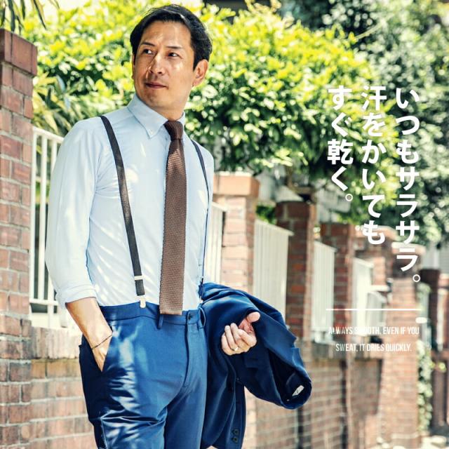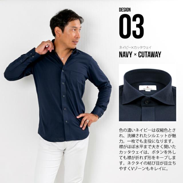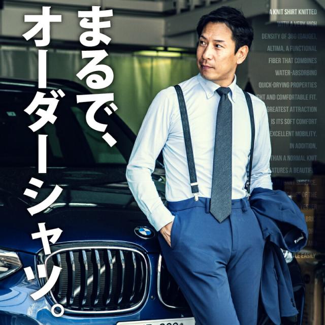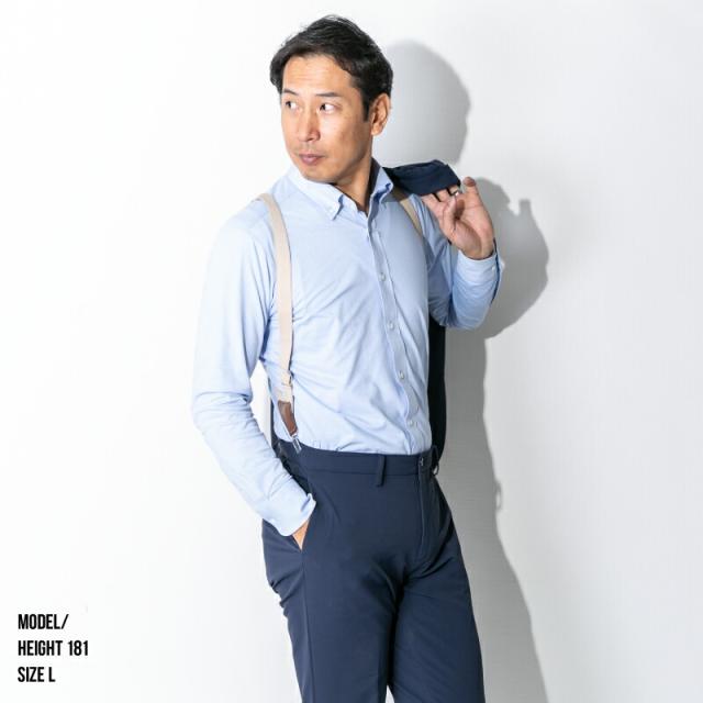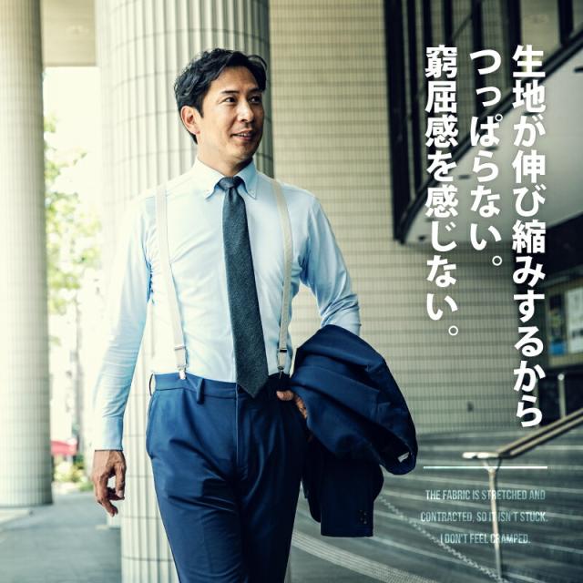 【送料無料】ワイシャツ ニットシャツ ビジネス 長袖 メンズ 吸水 速乾 ストレッチ イージーケア スリム 白 ボタンダウン サックス シャンブレー ネイビー カッタウェイ おしゃれ 無地