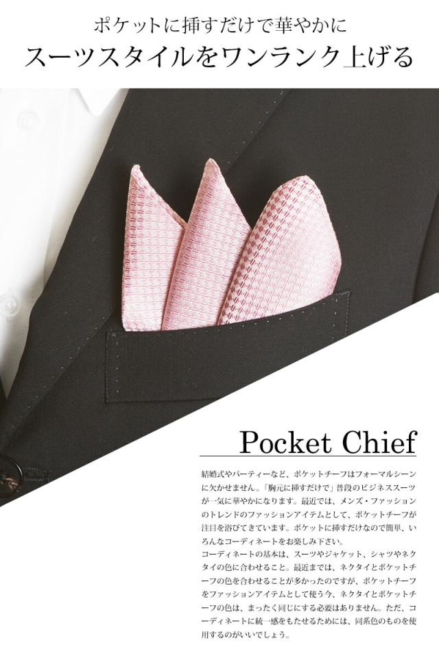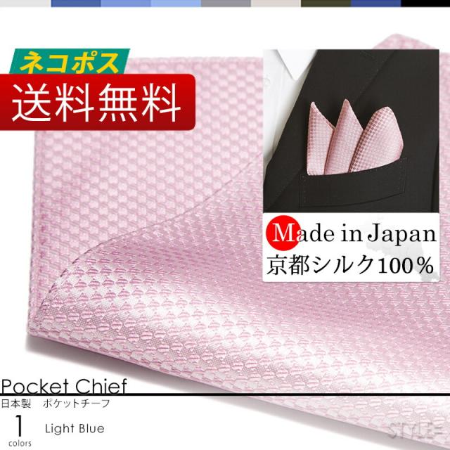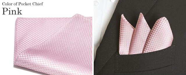 STYLE= ポケットチーフ 全期対応(結婚式におススメ) 日本製 京都産シルク100% ピーチピンク ブロックチェック 大きめサイズ(約29cm × 29cm)