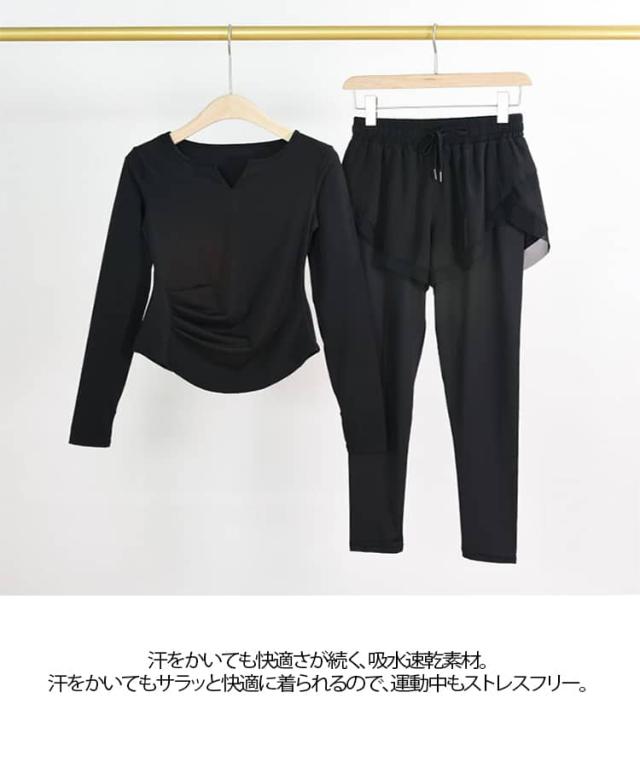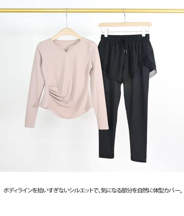 トップス ジムウェア レギンス ヨガウェア Tシャツ ピラティスウェア 上下セット 長袖 レディース かわいい ストレッチ ランニングウェア ジムウェア 大きいサイズ ジムウェア 無地 おしゃれ シンプル 運動着 スポーツウェア 吸汗速乾