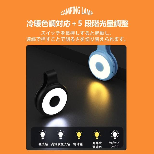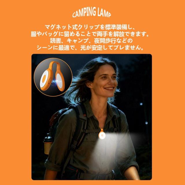 - 多様な取り付け方法:クリップ機能付きで衣類、バッグ、テントなどに挟んで固定できるほか、吊り下げ使用も可能。