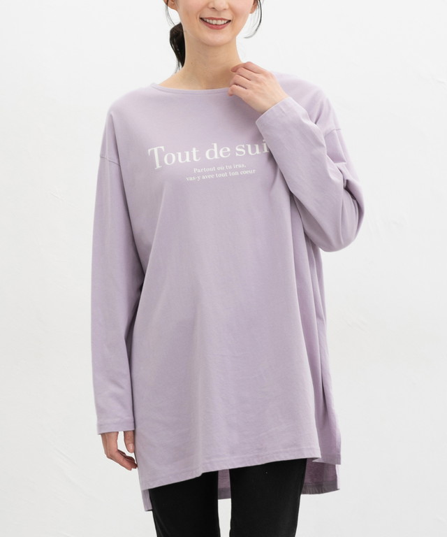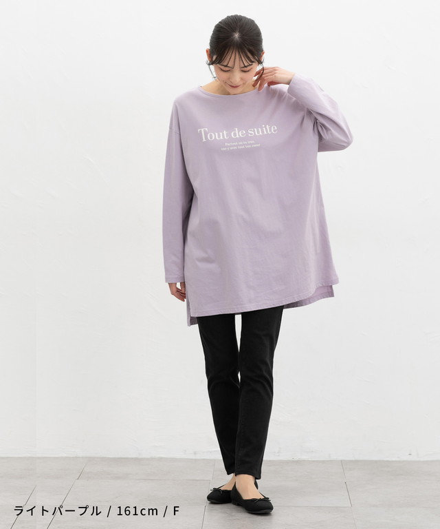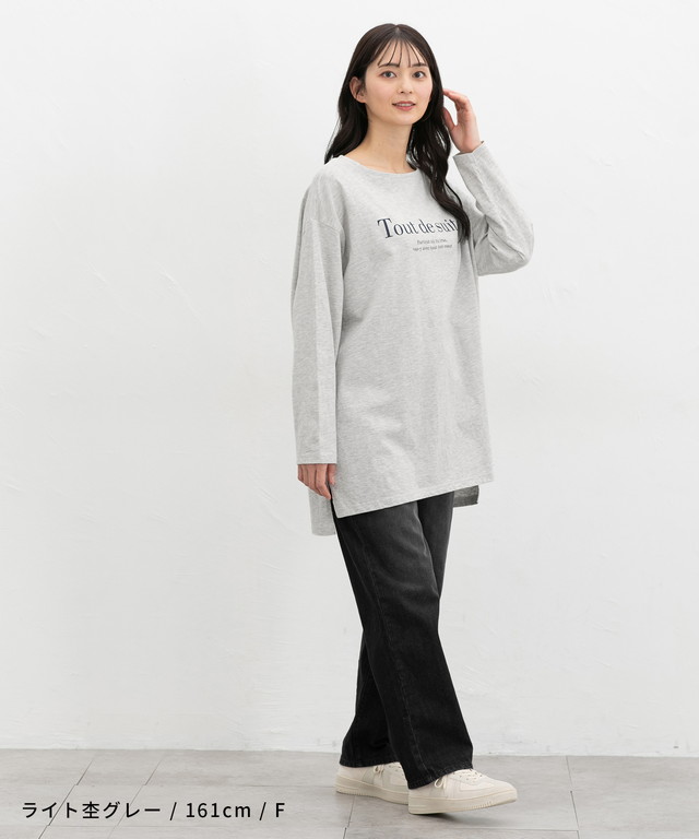 トップス Tシャツ ロンT 長袖Tシャツ カットソー 長袖 コットン 綿 ロゴ ゆったり フリーサイズ スリット レディース Honeys ハニーズ ゆるロゴTシャツ