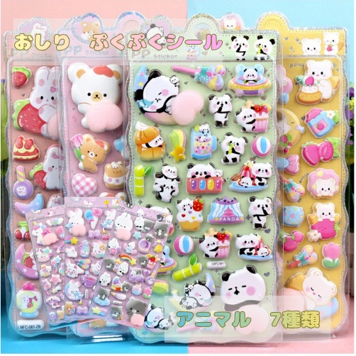 7種類 3Dシール おしりシール パステルカラー シール アニマル 立体 ぷにぷに ぷくぷく うさぎ パンダ くま ユニコーン 手帳 シール帳 シール交換 かわいい ぷっくり ご褒美 DIY スマホ デコ 文房具 小学生 女の子 プレゼント