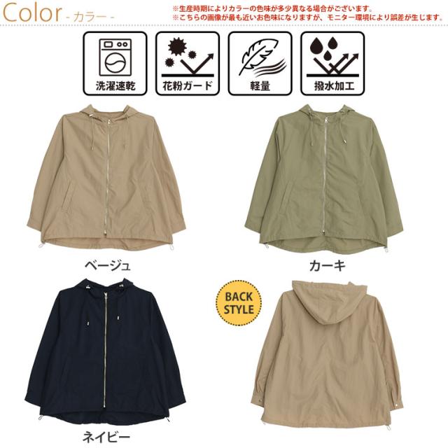新作 大きいサイズ レディース アウター | 軽量! 撥水&花粉ガード マンパー 洗える [862020] LL 3L 4L 5L 6L