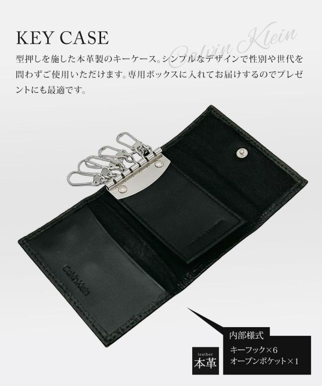 カルバンクライン キーケース メンズ 本革 おしゃれ 6連リング 三つ折り ボタン付き ポケット付き ブランド レザー シンプル スリム コンパクト 箱 ボックス付き 誕生日 贈り物 プレゼント ギフト キーリング 黒 ブラック CK Calvin Klein KEY CASE 31CK170001