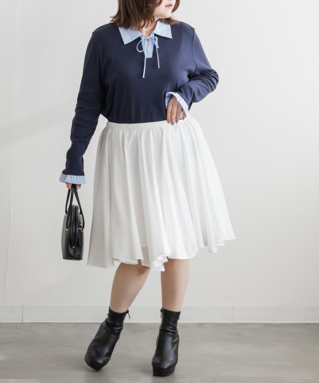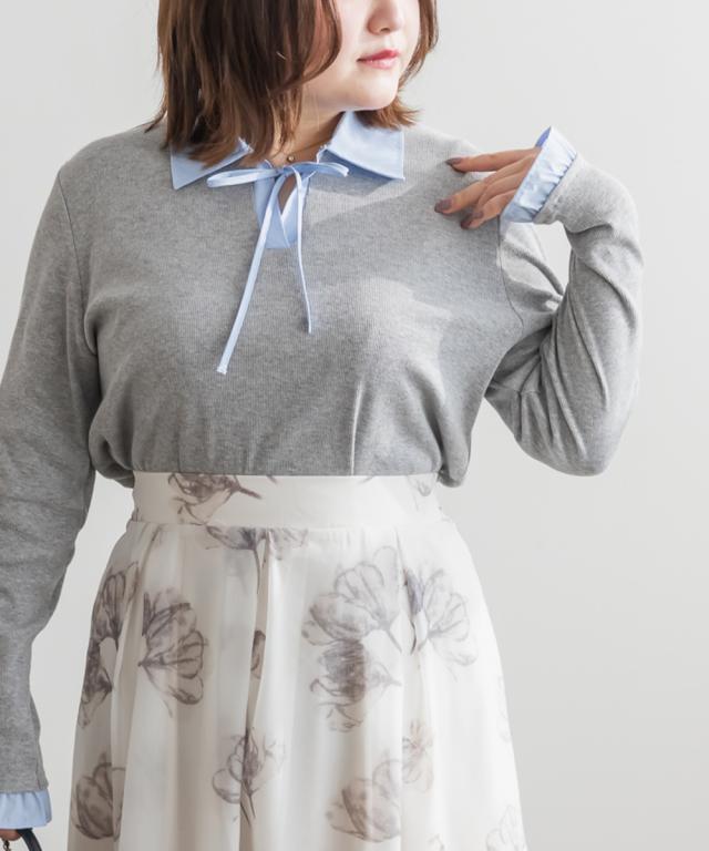 大きいサイズ/レディース/3L/4L/シャツレイヤードリボンプルオーバー