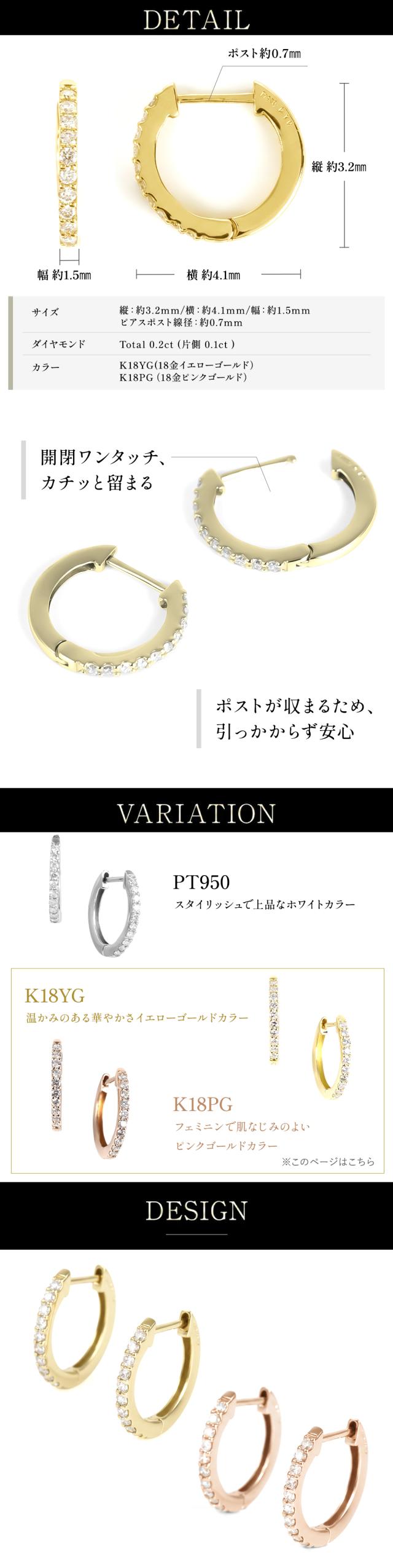ピアス レディース フープピアス ダイヤモンド プラチナ Pt950 ダイヤモンドピアス ゴールド K18 18K ピンクゴールド プラチナピアス ダイヤ 0.2ct 女性 誕生日 妻 ジュエリー アクセサリー 記念日 ホワイトデー プレゼント ギフト