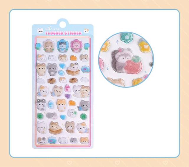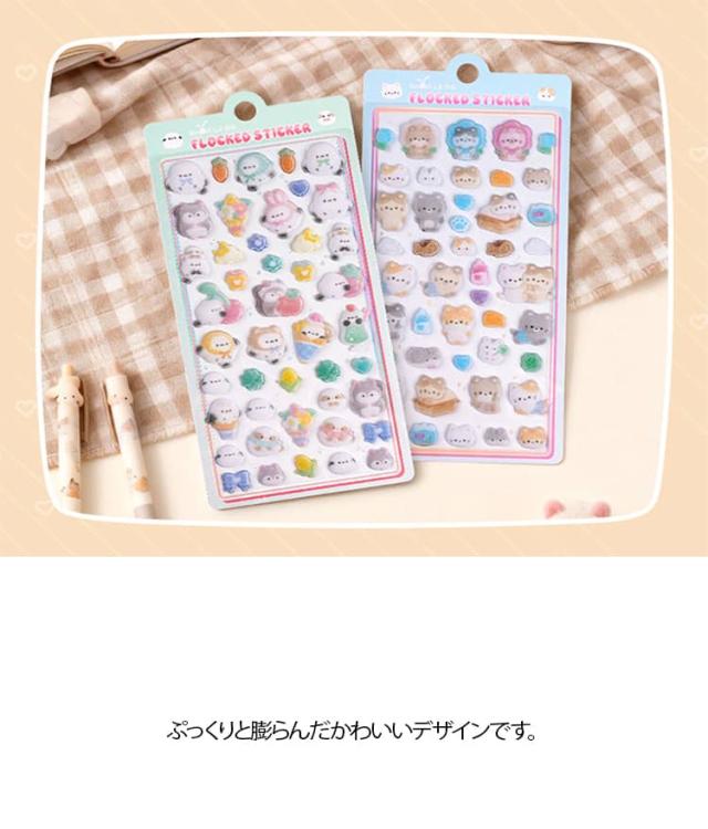 新発売 4枚セット コットンシール パフィーシール 立体シール 3d 起毛 シール ぷっくりシール 大量 ぷくぷくシール ステッカー かわいいキャラクター 推し活 平成 子供 大人 人気 SNS 新作 2026 数量限定