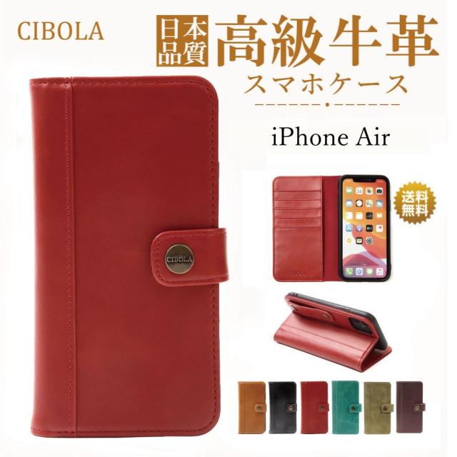 日本メーカーCIBOLA発売の高級牛革・本革 iPhone Air 手帳型スマホケース。耐衝撃、スタンド機能、カード収納で便利、本革のエイジングが楽しめる逸品。