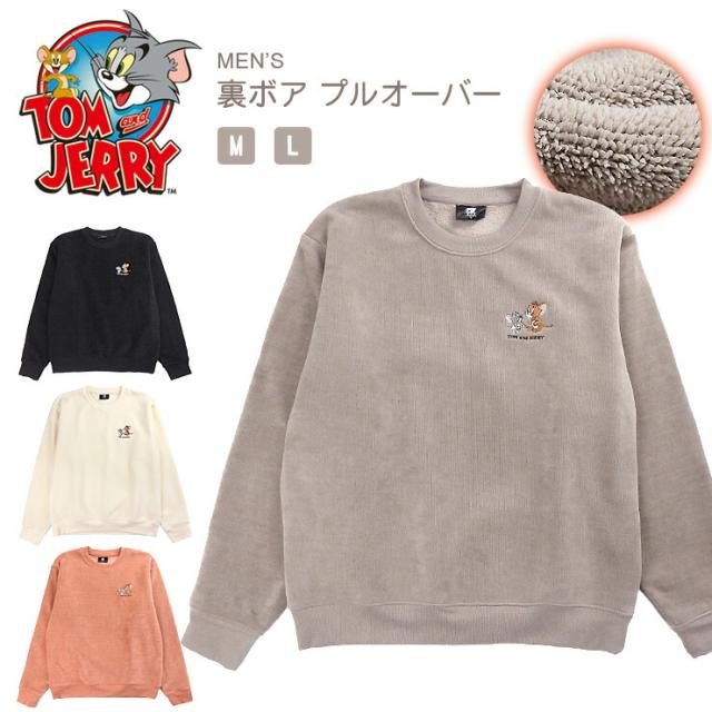 トムとジェリー 裏ボア 長袖 プルオーバー メンズ 秋冬 M L ブラック アイボリー グレージュ テラコッタ 4477-9561 トム&ジェリー Tom And Jerry 紳士 男性 裏起毛 厚手 黒 白 茶 オレンジ グレー 送料無料 3118
