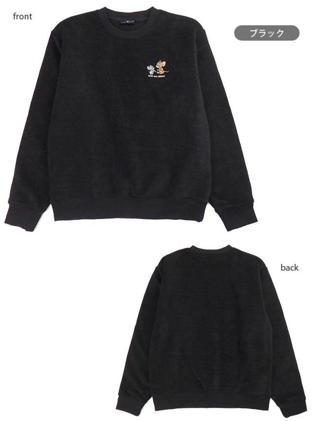 トムジェリのワンポイント刺繍がおしゃれ トップス キャラクター リブ袖口 クルーネック 丸首 カジュアル カットソー シンプル 暖かい 温かい コーデュロイ 起毛リブ タフィー