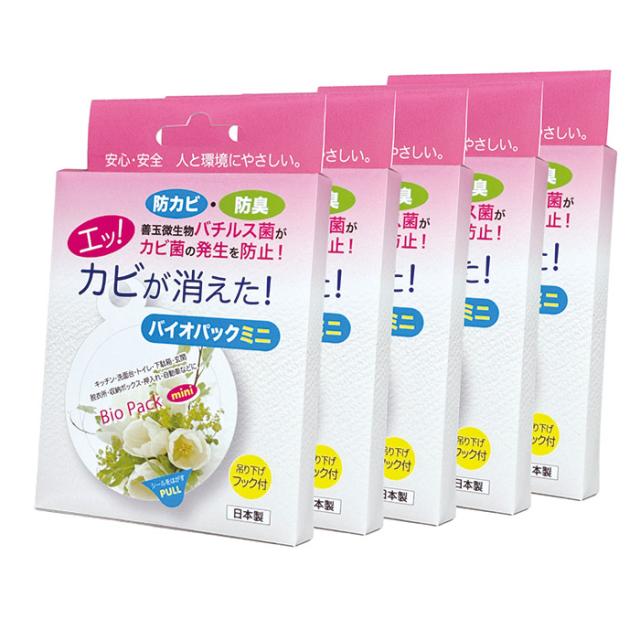 メール便 送料無料 防カビ 防臭 バイオパック ミニ (5個セット) 家中 置くだけ カビ防止 バチルス菌 バイオ 臭い対策 トイレ クローゼット 押入れ タンス 下駄箱 日本製 879971 【メーカー直営店】