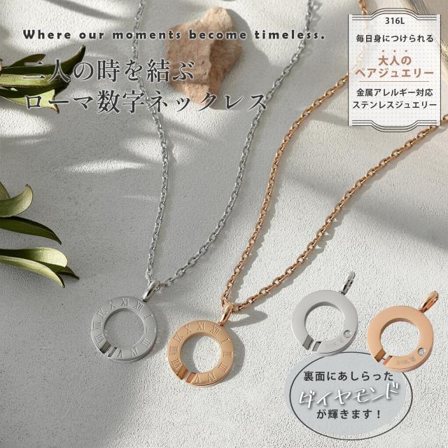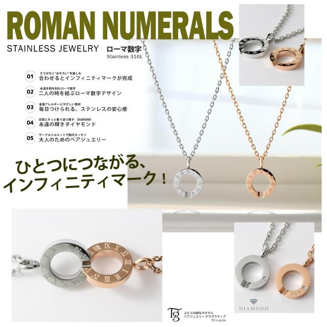 ペアネックレス ステンレス 刻印 ローマ数字 インフィニティ ダイヤモンド 金属アレルギー ギフト プレゼント 誕生日 記念日 ホワイトデー クリスマス ペア お揃い カップル