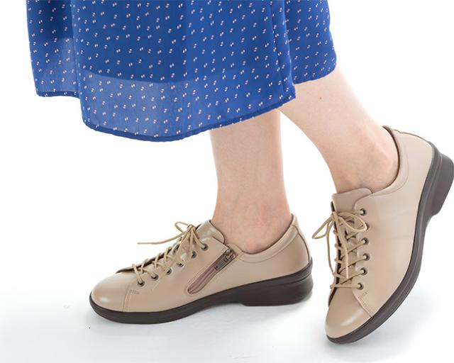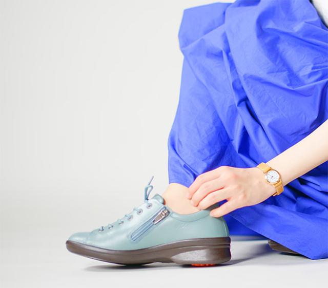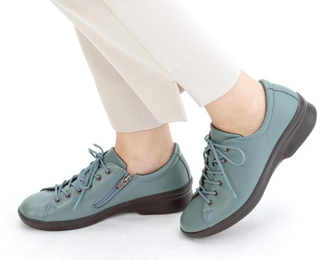 ひざに優しい機能搭載で歩きやすいのはもちろん、柔らかく足にフィットしやすいオリジナルのソフトレザーや内側ファスナー付きで快適な履き心地