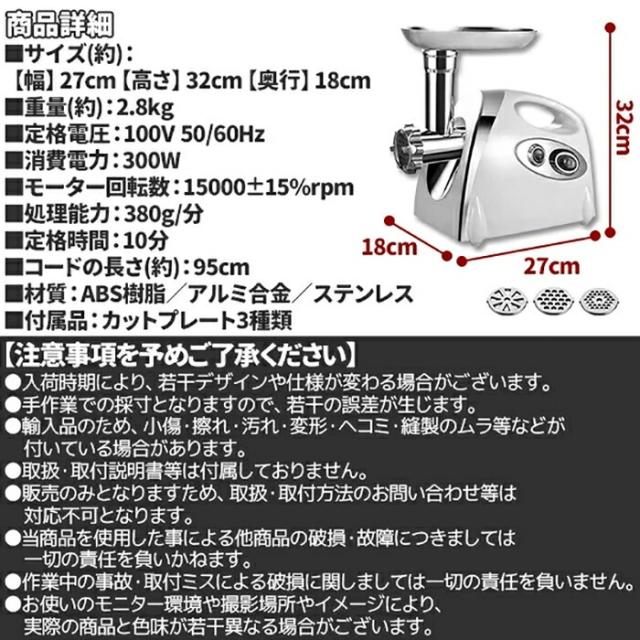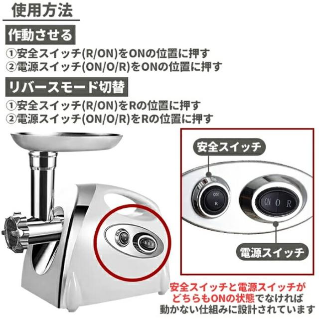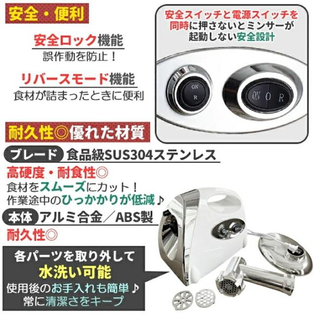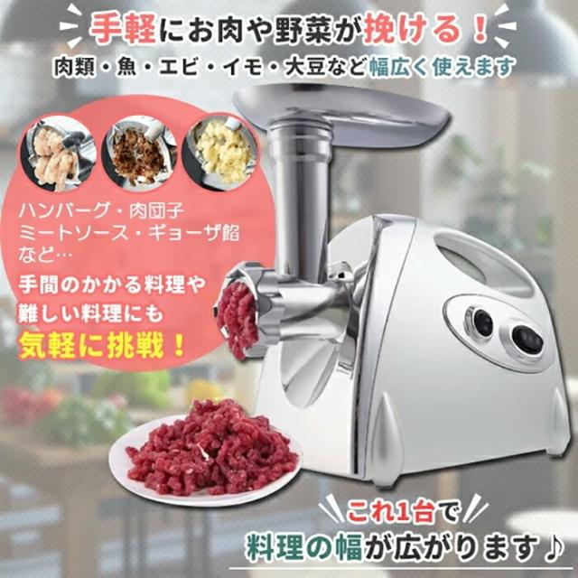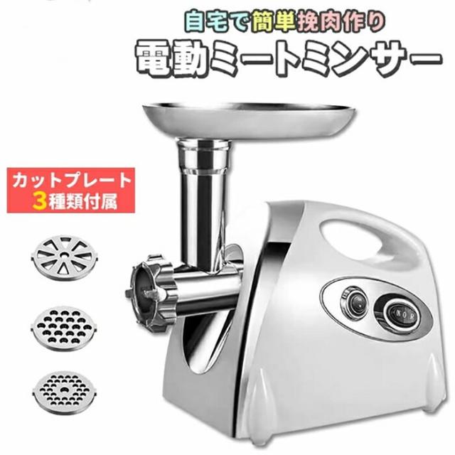 電動 ミートチョッパー ミンチ機 ミキサー 業務用 卓上 肉 ミンチ 粗挽き 細挽き 挽肉 ひき肉 合い挽き 魚 牛 豚 鶏肉 豆 機械 小型 家庭用 挽き肉 あいびき 挽肉料理 ステンレス キッチン家電 ミートグラインダー 白 ホワイト