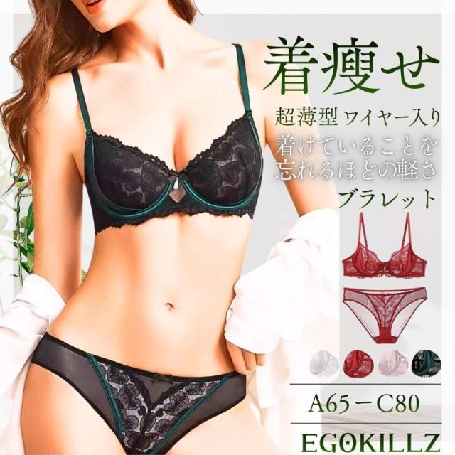 ソフトワイヤー入り ブラレット ブラレットショーツセット 胸を小さく見せるブラ 小さく見えるブラ ブラジャー 大きいサイズ バストダウン 着痩せ 補正下着 脇肉 着?せ ランジェリー インナー レディース セクシー EGOKILLZ