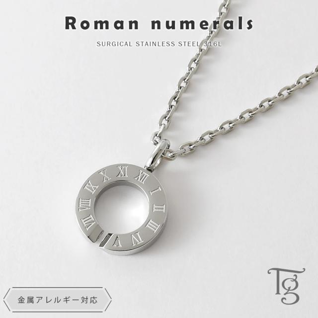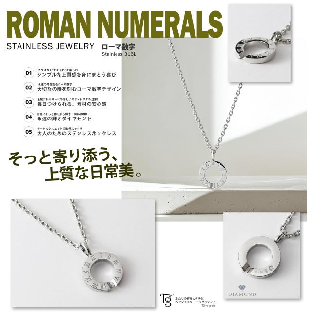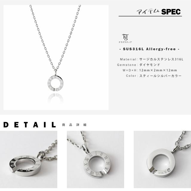 ネックレス メンズ ステンレス 刻印 ブランド 金属アレルギー対応 つけっぱなし ローマ数字 ダイヤモンド シンプル 大人 ペンダント スティールシルバーカラー サージカルステンレス 316L Terra-gratia テラグラティア lstn029st