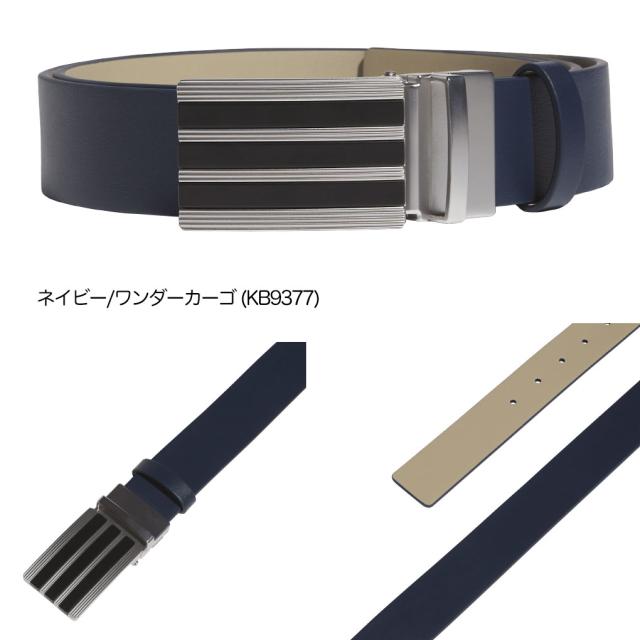 スリーストライプスデザインのメタリックバックル。リバーシブルで好みの色を選択できる。長さを調節できるカッタブルベルト。品番:KVI45