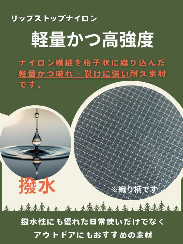 底部分は織り糸すべて黒を使ったリップストップナイロンを使用しています。