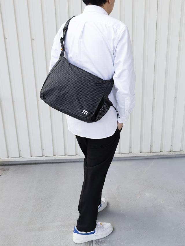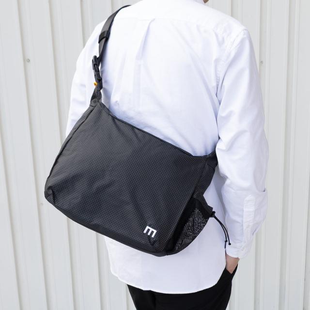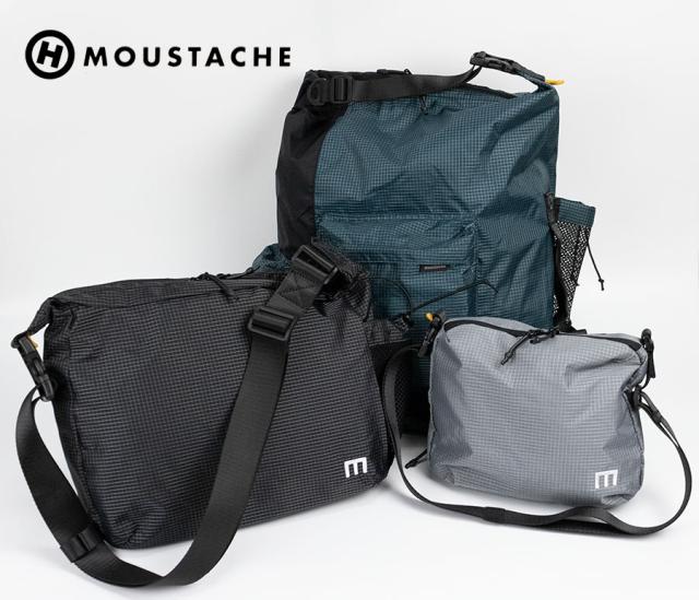 軽量かつ破れ・裂けに強い高耐久、撥水にも優れたリップストップナイロンを使ったシリーズです。アウトドア用品などに使われる素材で、格子に見えるのは織糸でプリントではありません。Moustacheの”M”が刺繍されているシンプルかつおしゃれなデザインで、日常使いにもおすすめです。