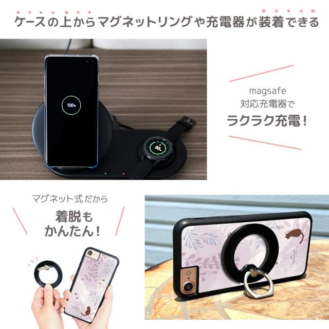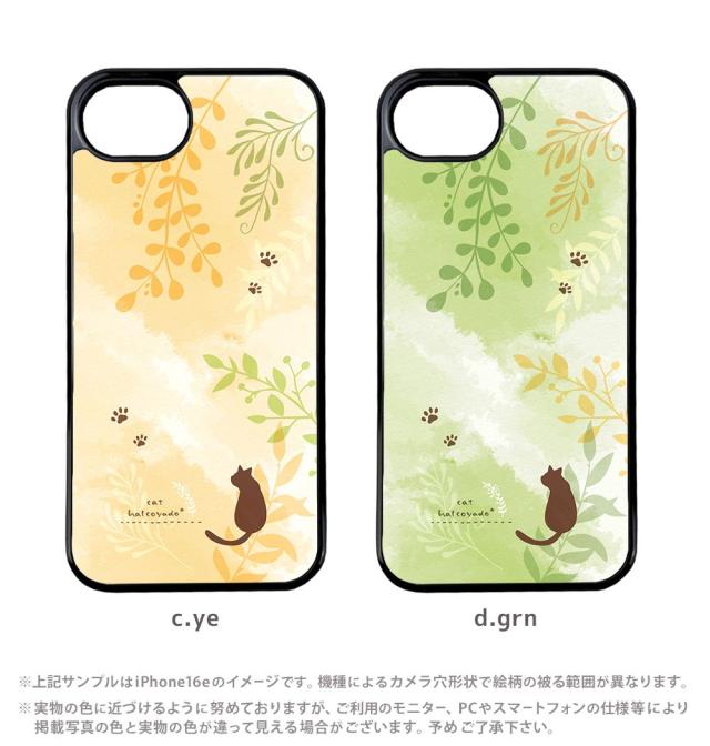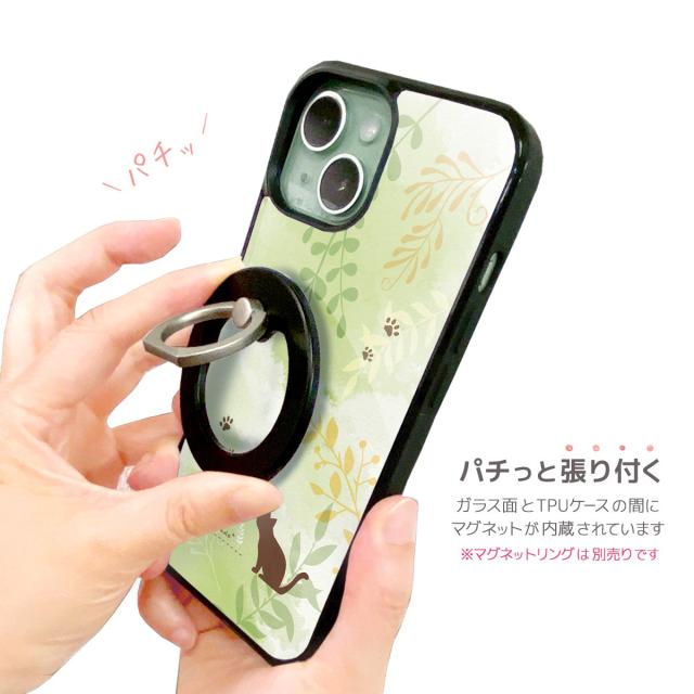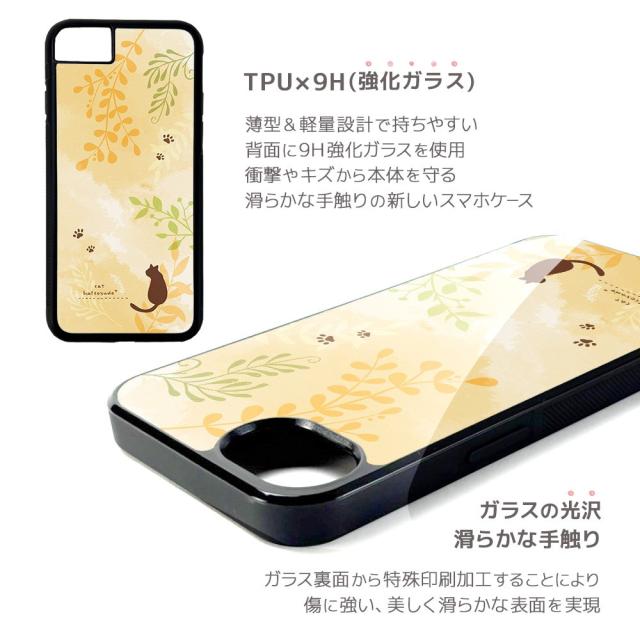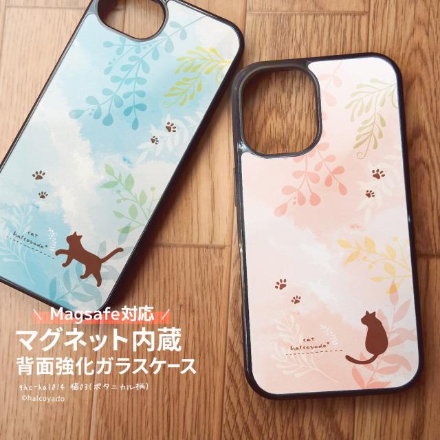 スマホケース 背面ガラス iPhone 17 iPhone 16e SE 第3世代 バンパーケース デザイン 強化ガラス MagSafe マグネット内臓 アイフォン 猫03(ボタニカル柄) ねこ 猫 ネコ ボタニカル 淡色 北欧 くすみカラー 水彩 かわいい はるこうや堂 halcoyado