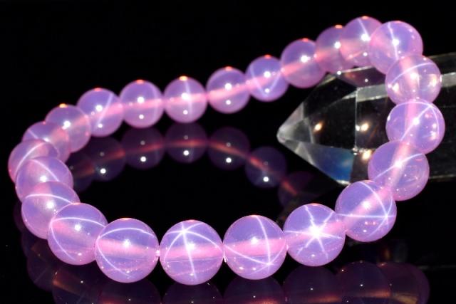 【1点物】6条スター スターピンクサファイア(合成コランダム) 8mm ブレスレット 恋愛運【ネコポス送料無料】_MC4886