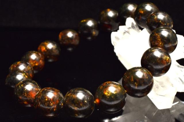 【1点物】ロシア産 アンバー琥珀(薬珀) 12.5mm ブレスレット 健康運・金運・仕事運_MC4963