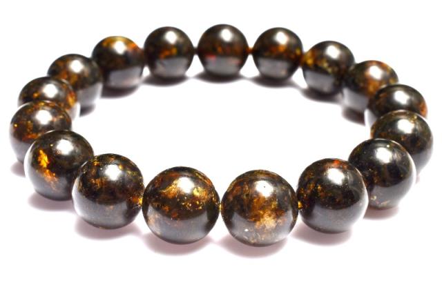 【1点物】ロシア産 アンバー琥珀(薬珀) 12.5mm ブレスレット 健康運・金運・仕事運_MC4964