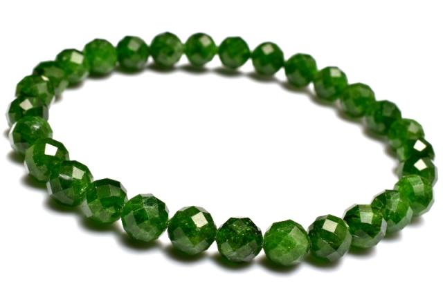 【1点物】深みある鮮やか色彩 ダイオプサイト 6.5mm 64面カット ブレスレット 金運・仕事運_MC4980