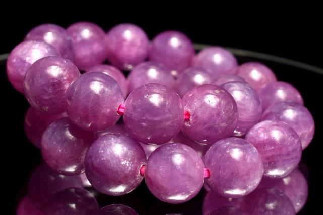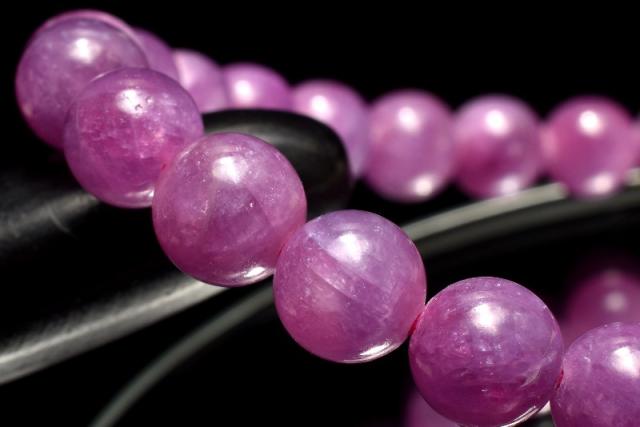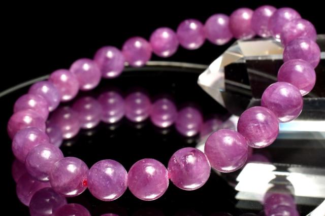 | 特徴・意味 | ピンクパープルの鮮やかな発色のルビーがとても美しいです。 シラーや、結晶構造が見られる珠もあり原石好きのコレクター様にもオススメのブレスレットです。 ラウンド形状は近年どんどん流通量が減っており、入荷数も少ない商品になります。 ルビーは、コランダムという鉱物のグループのダイヤモンド(硬度10)の次に硬い鉱物(硬度9)で、赤いものをルビー、青いものをサファイアと呼びます。 ダイヤモンド、エメラルド、サファイアと合わせて「四大宝石」と呼ばれ、さらにアレキサンドライトと合わせると、「五大宝石」と呼ばれています。 |