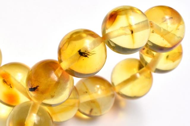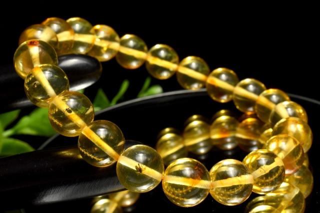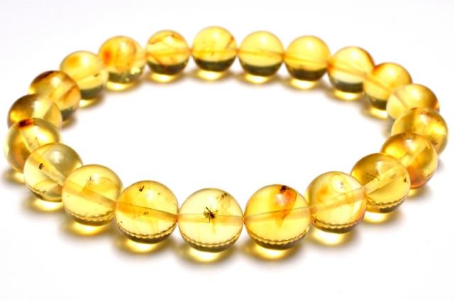 【1点物】全粒内包☆限定入荷! 虫入り琥珀アンバー 9.5mm ブレスレット 健康運・金運・仕事運【ネコポス送料無料】_MC5041