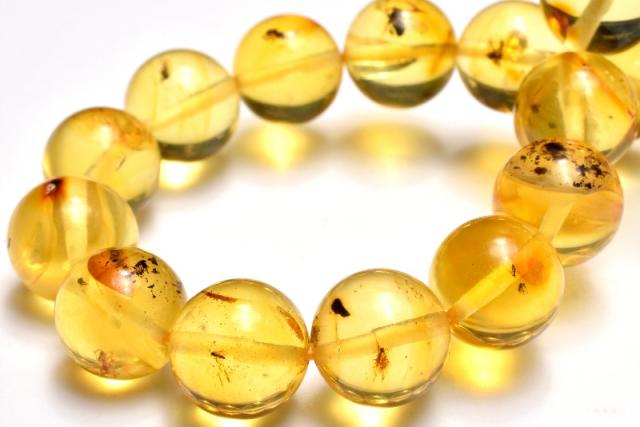 【1点物】全粒内包☆限定入荷! 虫入り琥珀アンバー 9.5mm ブレスレット 健康運・金運・仕事運【ネコポス送料無料】_MC5042