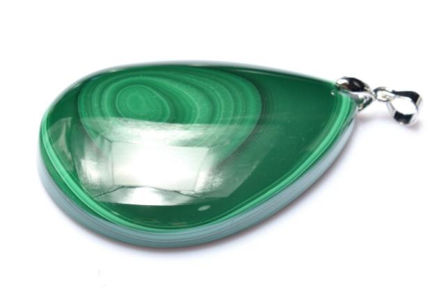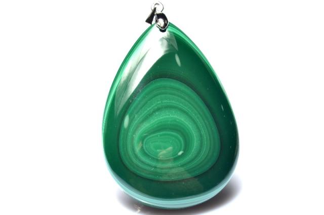 【1点物】天然高発色◇天眼模様 マラカイト(孔雀石) 45x32mm ドロップ ペンダントトップ 金運・仕事運・厄除け_PC9275