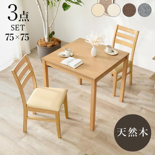 ■サイズ:テーブル:(約)幅75×奥行75×高さ72cm、チェア:(約)幅41×奥行49.5×高さ82.5×座面高43cm■素材:主材:天然木、天板:天然木化粧繊維板、張地:アイボリーPVC / ベージュ・ブラウン・グレーポリエステル