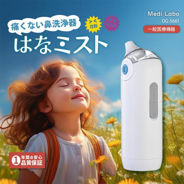 痛くない 鼻洗浄器 はなミスト OG-5661 Medi Labo|電動 痛くない ミスト式 鼻洗浄 器具 子供 風邪 予防 ウイルス 花粉症 対策 2026 鼻水 鼻づまり 蓄膿症 副鼻腔炎 対策グッズ 一般医療機器 鼻腔洗浄器【送料無料(宅配便)】
