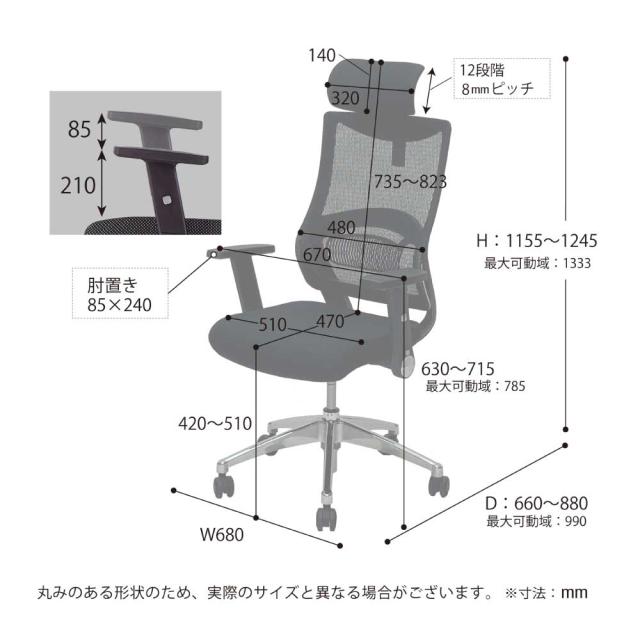 ・製品サイズ:W680×D660〜990×H1,155〜1,333 mm