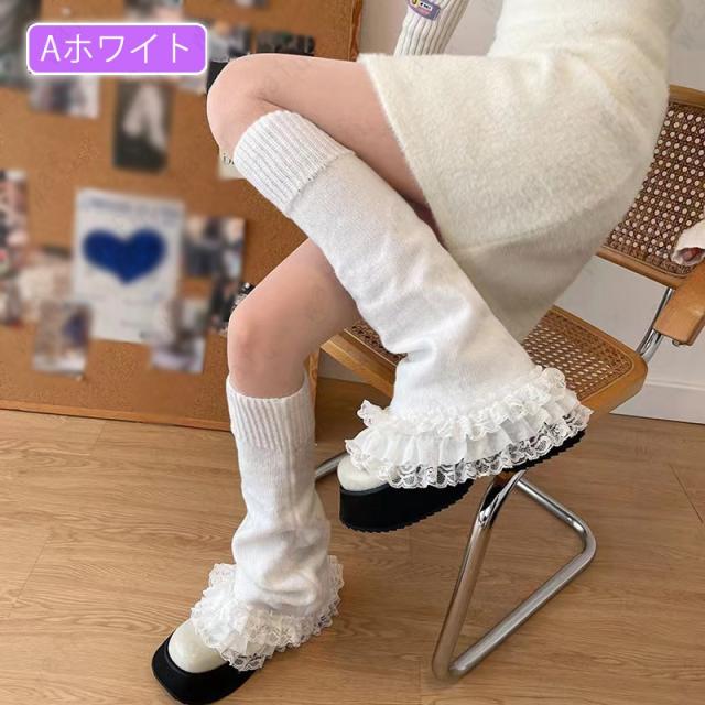 ハイソックス レディース (st47#) 当日発送 2type 8color ルーズソックス レッグウォーマー ロング lolita ロリータ風 ゆったり レース 可愛い くつ下 靴下 女性