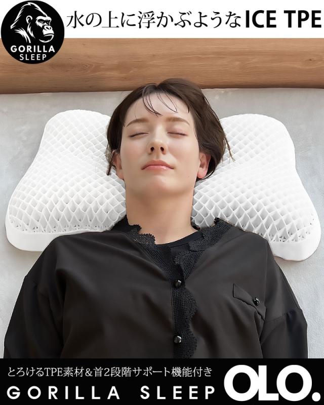 枕 ぷるんっと弾む 2段階 首サポート機能付き とろける TPE素材まくら OLO(オロ)TPE GORILLA SLEEP ゴリラスリープ 快眠 ストレートネック 肩こり 首こり まくら TPE枕 無重力枕 頸椎サポート 体圧分散 洗える 丸洗いOK 通気性 蒸れない 高さ調整 立体構造