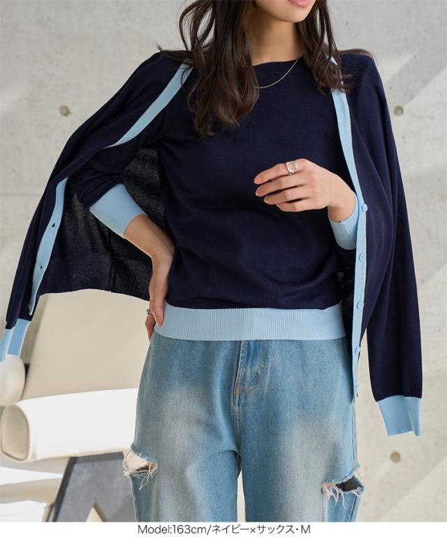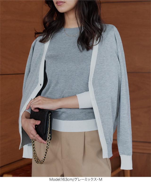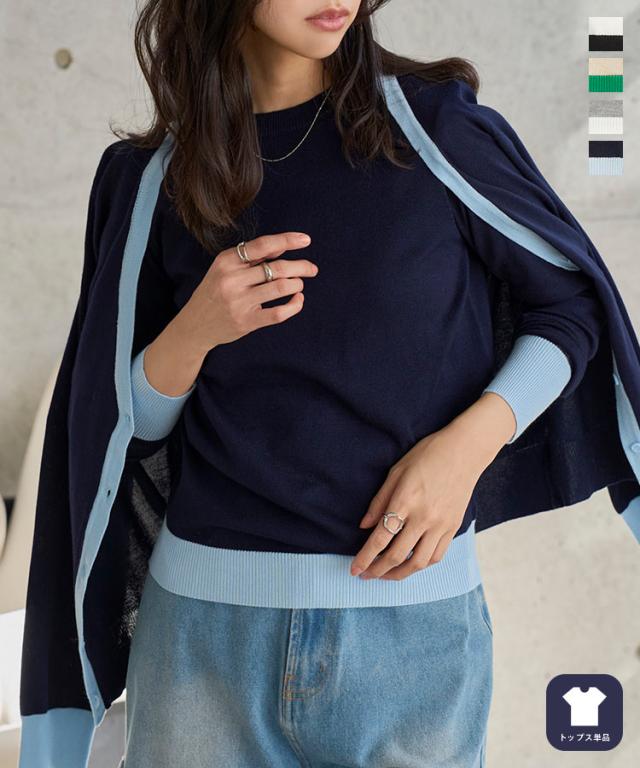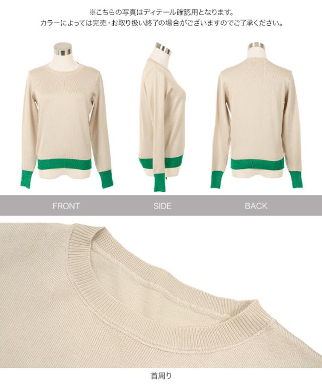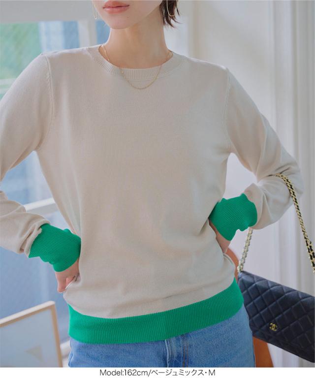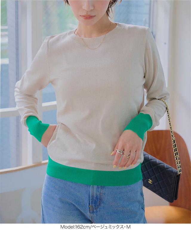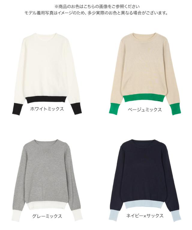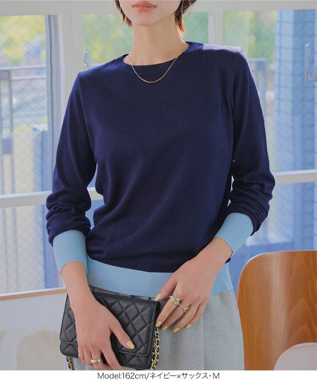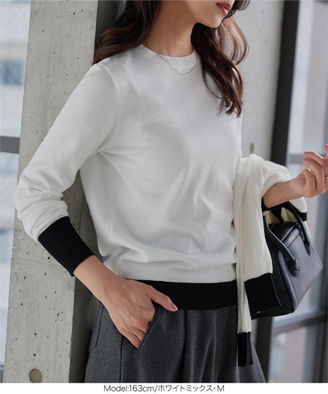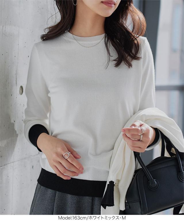 春新作 M L 丸首バイカラーニットトップス N1258 入荷済 レディース 20代 30代 40代 トップス 長袖 ニット 丸首 ハイゲージ ベーシック シンプル ベーシックニット シンプルニット オフィス オフィスカジュアル オフィカジ 仕事 アンサンブル