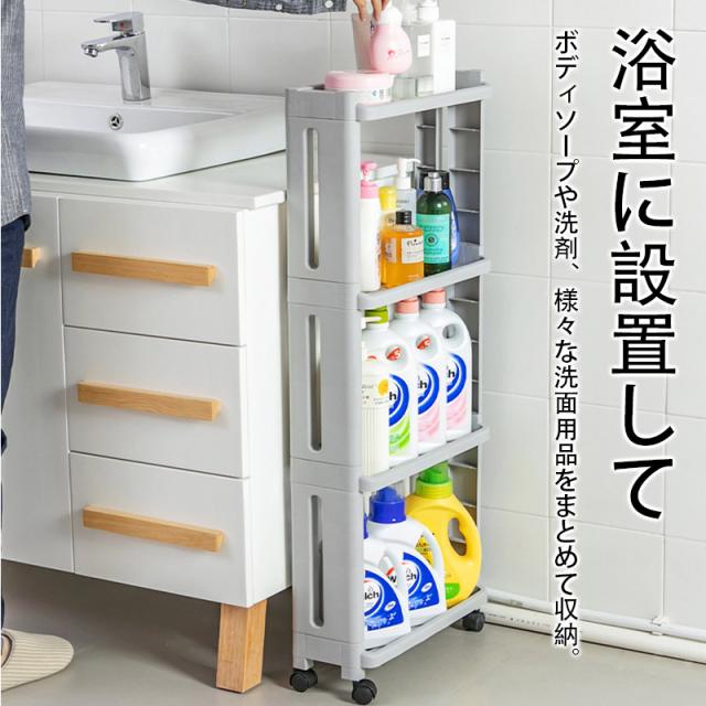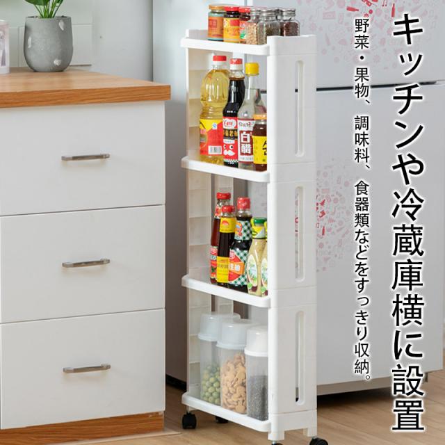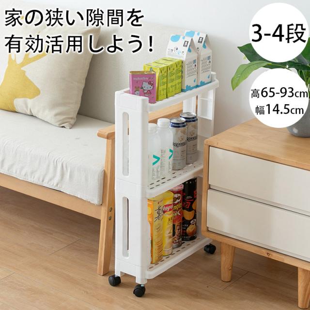 隙間収納 すき間収納 キッチンラック スリムラック 幅 14.5cm 4段 3段 キャスター付き 洗濯機サイド 洗面所 冷蔵庫 隙間棚 納ボックス